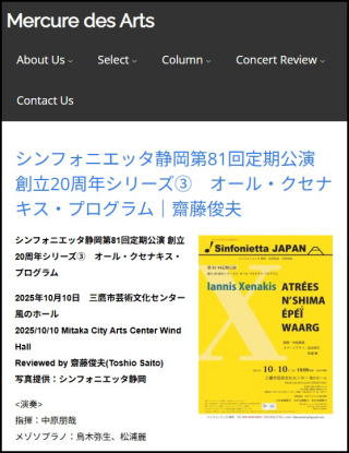 | 「音楽現代」 、「Mercure des Arts 」掲載 (2025年11月17日) | |